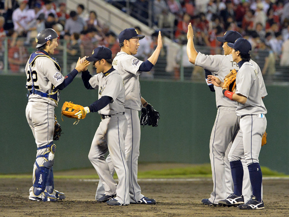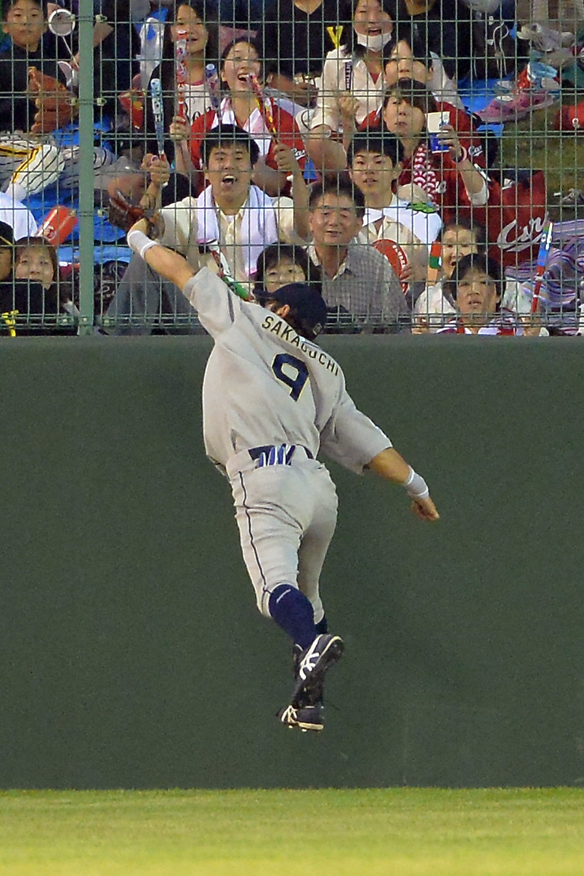 4番 糸井 二ゴ失 菊池(二)のファンブルにより出塁する 1塁 |