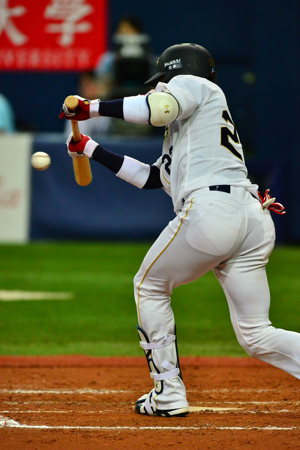 1番 平野恵 四球 外角のストレートを見送り四球を選ぶ 満塁 |