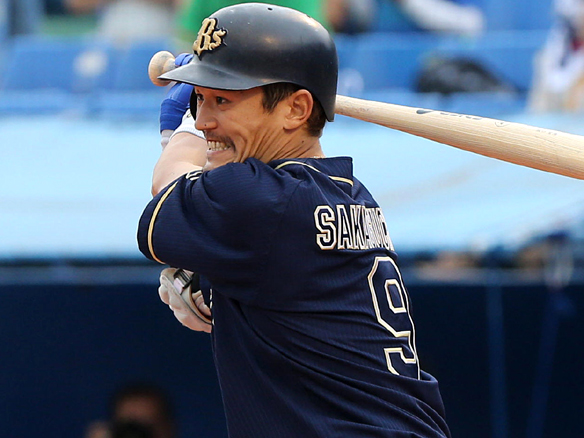 9番 坂口 左安 ランナー3塁の3-1からレフトへのタイムリーヒットでオリックス先制! ヤ0-1オ 1塁 ![]() 0