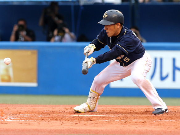 1番 平野恵 一犠 ランナー1,3塁からセーフティスクイズを決める ヤ0-2オ 2アウト2塁 ![]() 0