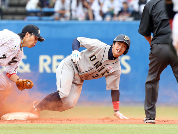 2番 安達 中安 センターへのヒットを放つ 1塁 |