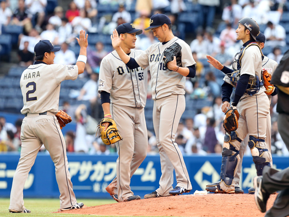 4番 糸井 空三振 低めの落ちる球に空振り三振でバッターアウト 2アウト |