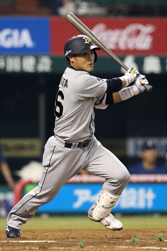 7番 坂口 左安 ランナーフルベースの3-2からレフトへのタイムリーヒット 西3-5オ 満塁 ![]() 3