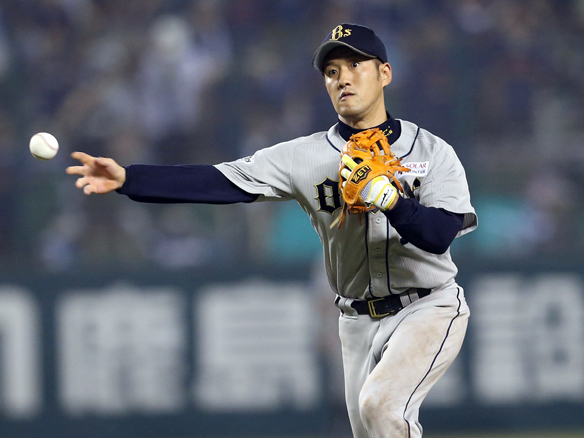 浅村選手の打球を処理するセカンド・平野恵選手
