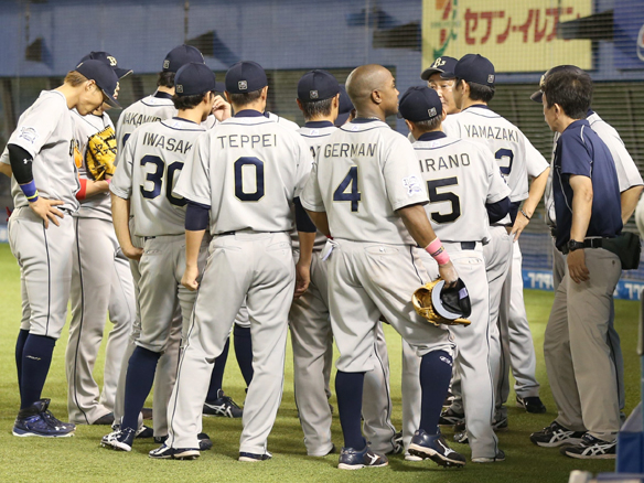 4番 サブロー 一ゴ 外角の変化球を打つもファーストゴロ 3アウトチェンジ |