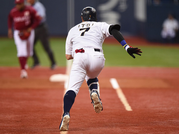 チーム初安打を放ち1塁を目指す糸井選手