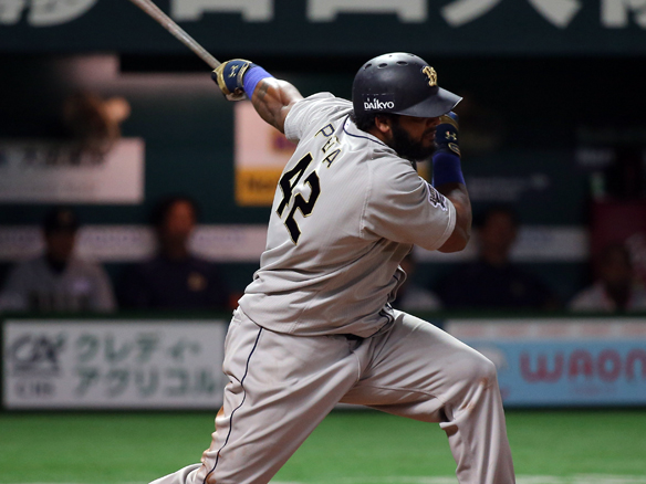 4番 ペーニャ 中安 2アウト2塁の3-2からセンターへのタイムリーヒット ソ0-3オ 1塁 ![]() 0