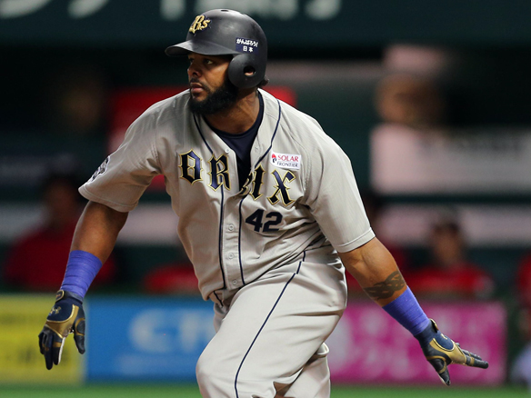 先頭のペーニャ選手がヒットを放つ