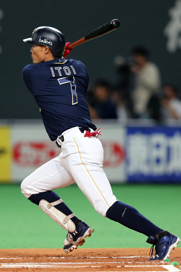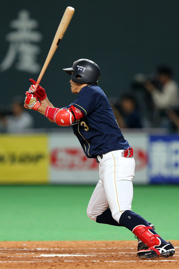 スタメン復帰した糸井選手が早速ヒットを放つ