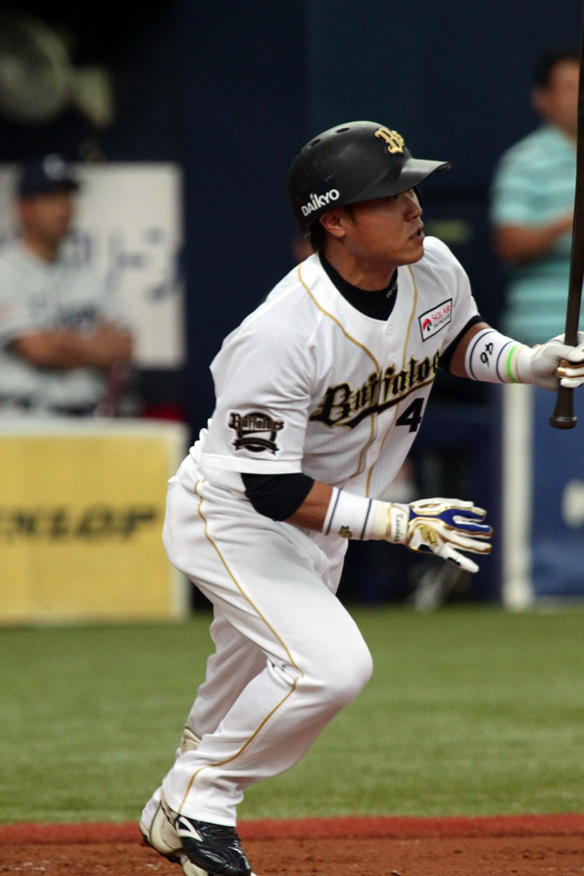 9番 伊藤 中安 ランナー1,3塁の0-1からセンターへのタイムリーヒットでオリックス先制! オ1-0西 1,2塁 ![]() 1