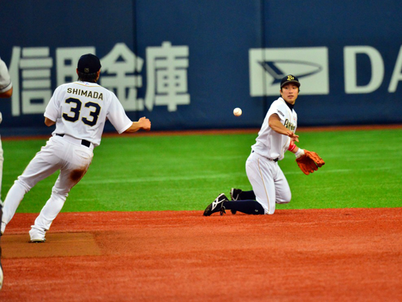ショート・安達選手が金子千尋投手を助けるファインプレー!