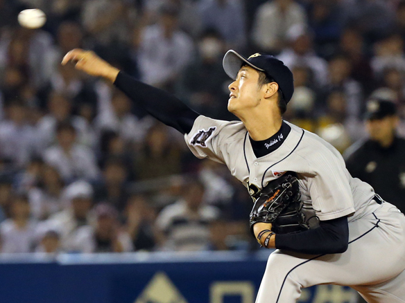 先発・吉田一投手が引退試合を迎えたM里崎選手から三振を奪う