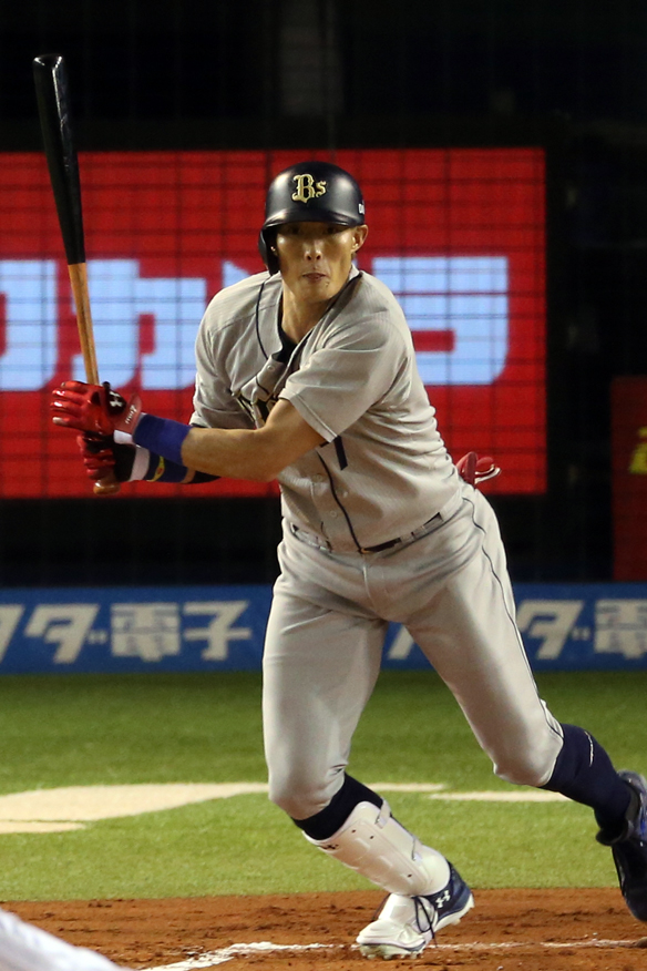 3番 糸井 中安 センターへのヒットを放つ 1塁 |