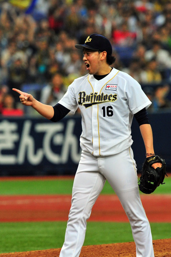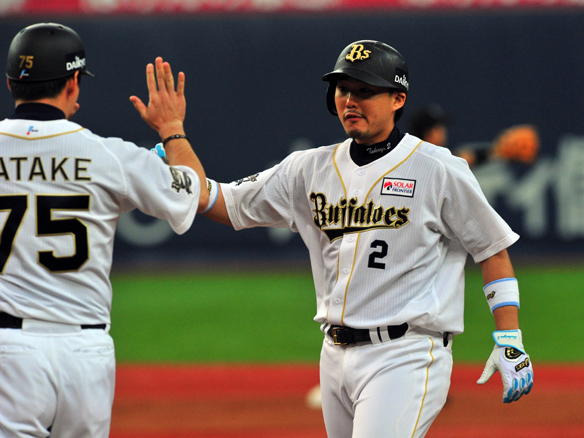 4番 T-岡田 右中本 2アウト1,2塁の3-1から右中間への3ランホームランでオリックス逆転!!! オ6-4日 ![]() 6