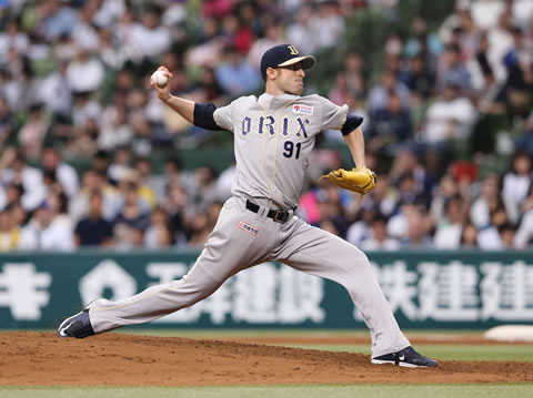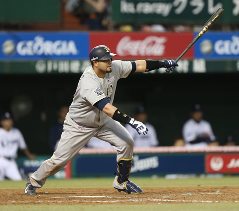 投手 岡本篤 5番 カラバイヨ 中安 ランナー1,3塁の1-0からセンターへのタイムリーヒット 西4-1オ 1,2塁 ![]() 4