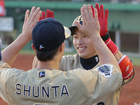 今日一軍昇格を果たした伊藤選手の犠飛で勝ち越しに成功!!