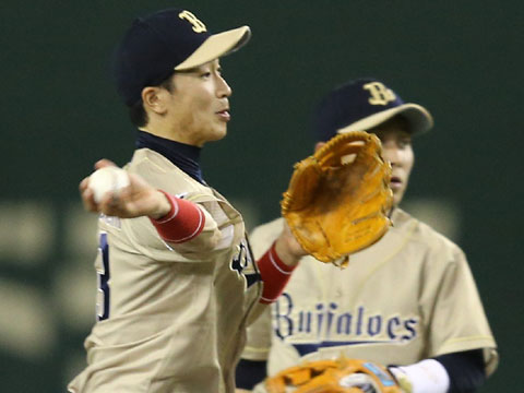 投手 松葉 守備変更:糸井センター→ライト 守備変更:駿太→センター 守備変更:T−岡田ライト→レフト |