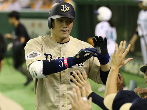 投手 山口 1番 糸井 左安 レフトへのヒットを放つ 1塁 |