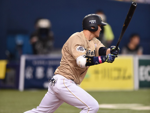 6番 糸井 右安 外角のスライダーをライトへ打ってヒット 1,3塁 |
