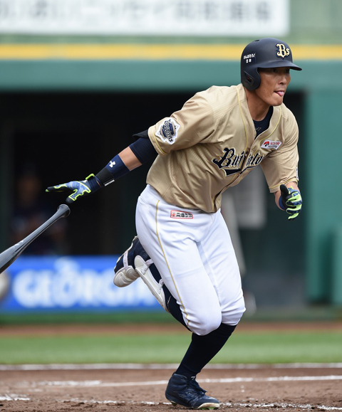 5番 T-岡田 右安 ライトへのヒットを放つ 1塁 |