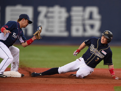チーム初安打をマークした安達選手が盗塁を決め、好機を作り出す☆