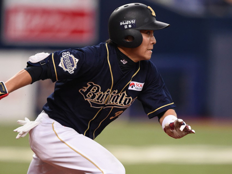 6番 糸井 左安 レフトへのヒットを放つ 1塁 |