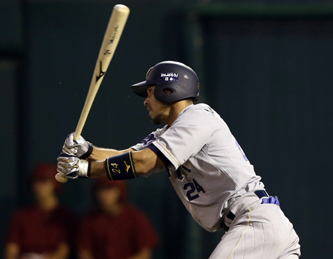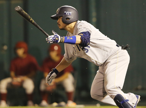 2番 牧田 左安 レフトへポテンヒットを放つ 1塁 |