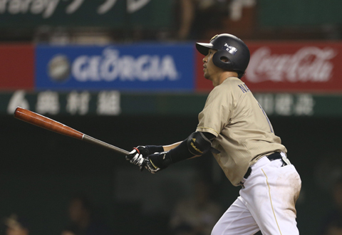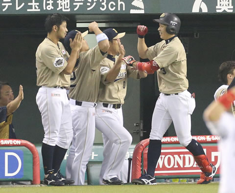 9番 岡田 左本 3-1からレフトスタンドへのホームラン 西3-10オ ![]() 3