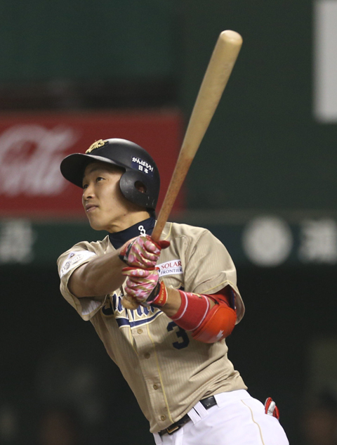 4番 中村 中安 1アウト3塁の0-2からセンターへのタイムリーヒット 西1-10オ 1塁 ![]() 1