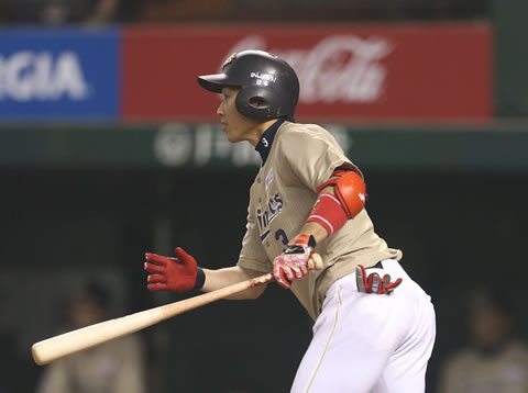 2番 安達 中安 センターへのヒットを放つ 1塁 |