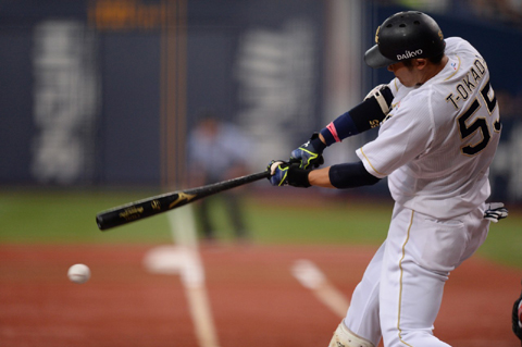 4番 T-岡田 死球 デッドボールを受ける 1,2塁 |