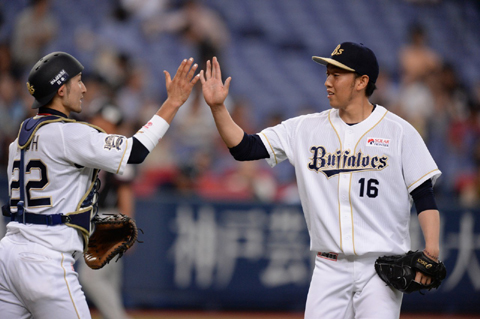 ピッチャー金子千尋に代わって平野佳がマウンドにあがる |