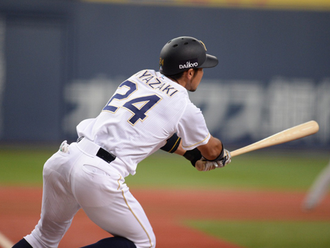 9番 山崎 左安 レフトへのヒットで出塁 1塁 |