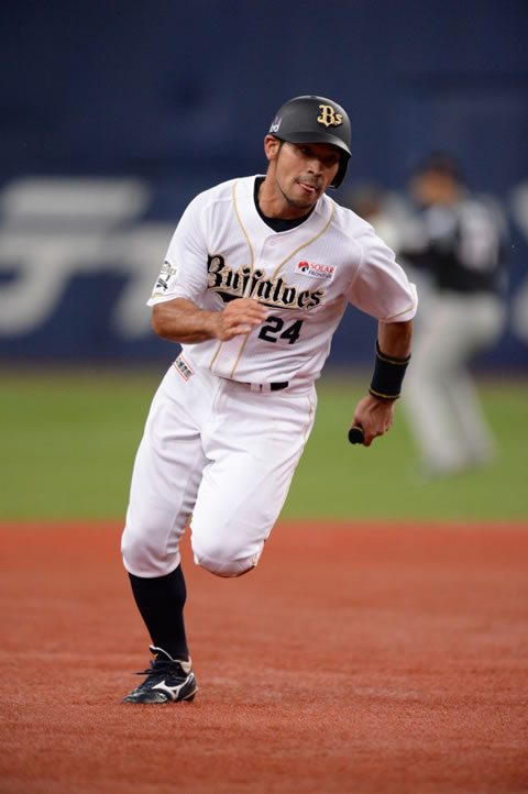 6番 クルーズ 左中二 1アウト1,2塁の1-0からセンターへ2点タイムリーツーベース! オ3-7ロ 2塁 ![]() 3