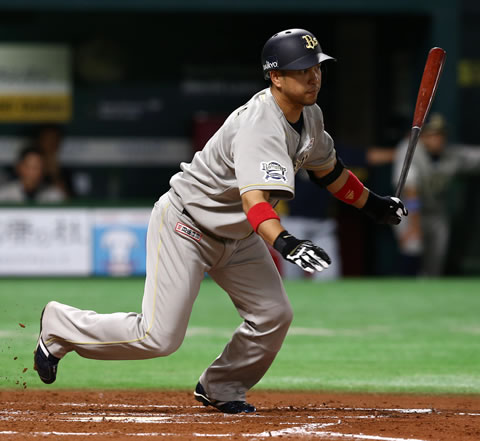 投手 寺原 3番 糸井 左安 レフトへのヒットで出塁 1塁  |