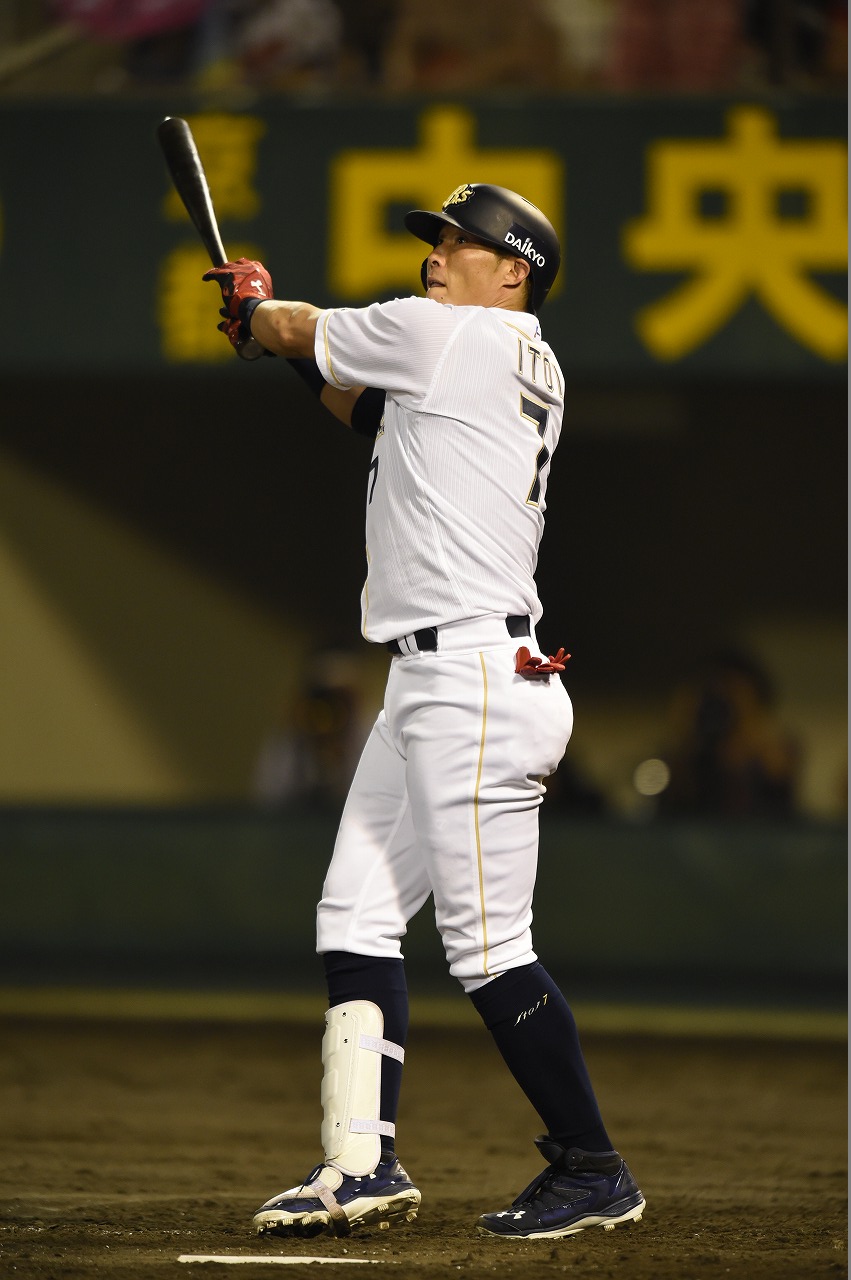 3番 糸井 左本 1アウト1,3塁の1-0からレフトスタンドへの3ランホームラン オ7-0日 ![]() 7