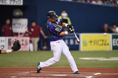3番 糸井 中飛 高めの真っ直ぐを打つもセンターフライ 2アウト  |