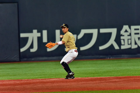 9番 外崎 遊直 外角のカーブを打つもショートライナー 3アウトチェンジ  |