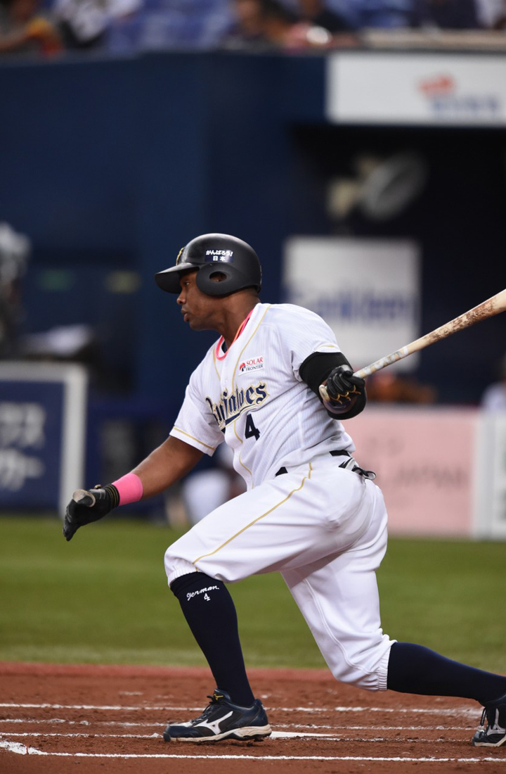 6番 ヘルマン 右安 ライトへのヒットを放つ |