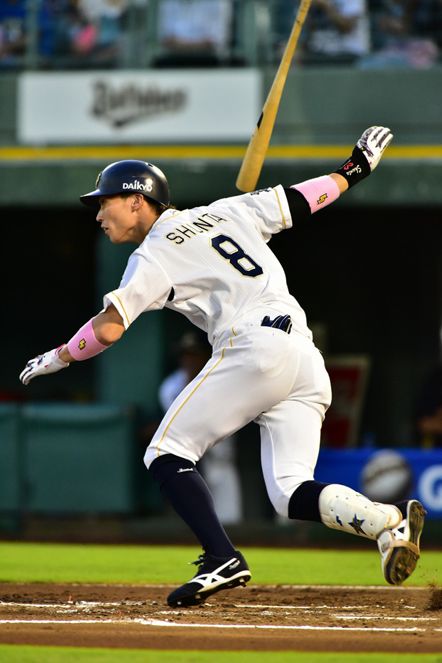 2番 縞田 中安 センターへのヒットを放つ 1塁 |