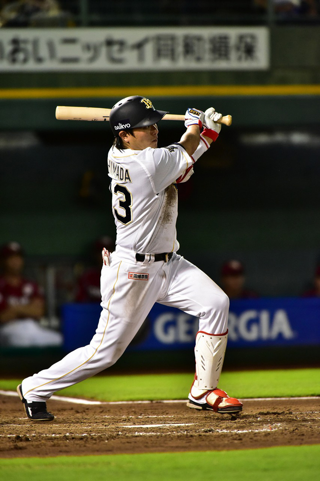 2塁走者島内は走塁死 オ0-2楽 3アウトチェンジ |