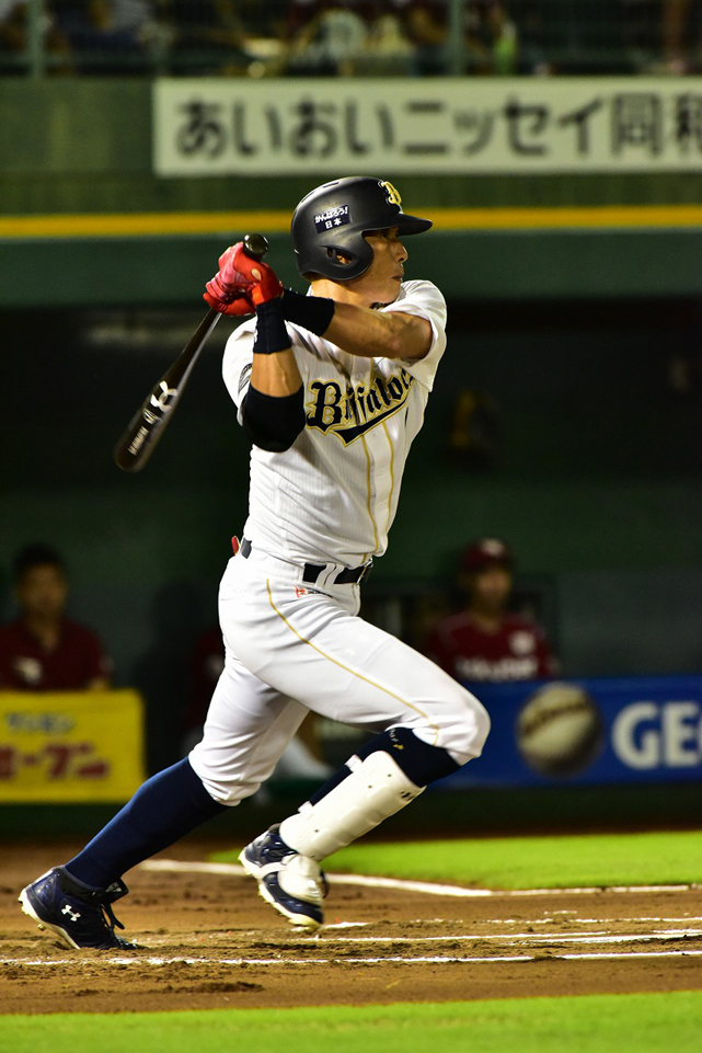 4番 ウィーラー 左安 レフトへのヒットを放つ 1塁 |