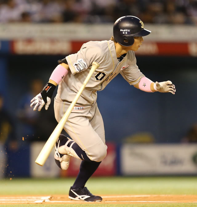 2番 角中 中安 センターへのヒットで出塁 1塁 |