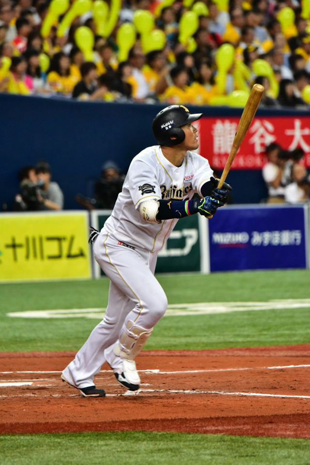 3番 糸井 右安 外角のツーシームをライトへ打ってヒット 1塁 |