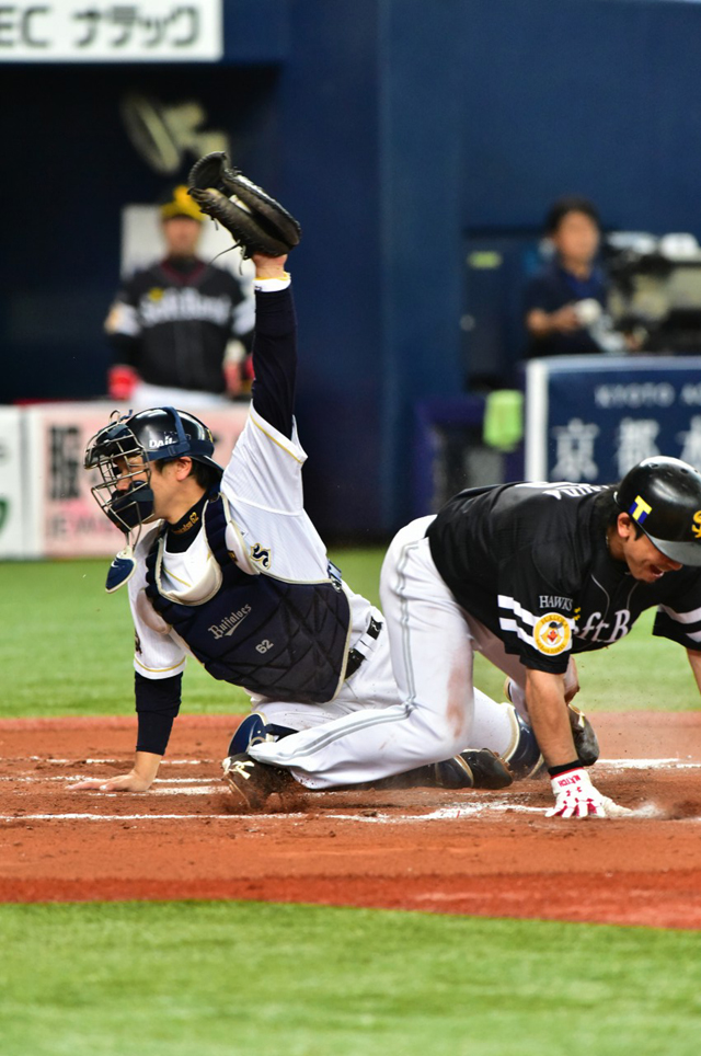 7番 長谷川 左安 ランナー2塁の2-2からレフトへのタイムリーヒットでソフトバンク先制! オ0-1ソ 1塁 ![]() 0