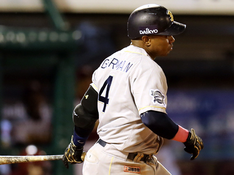 3番 ペーニャ 左本 1アウト1,2塁の0-1からレフトスタンドへの同点3ランホームラン! 楽4-4オ ![]() 4