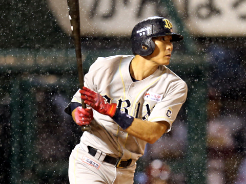 6番 小谷野 左翼二 ランナー1,2塁から2点タイムリーツーベース! 楽0-3オ 2塁 ![]() 0