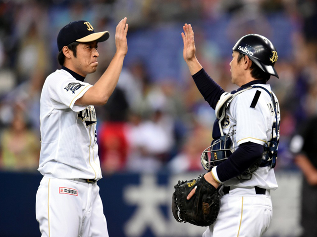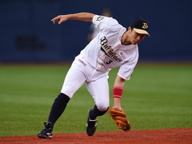 5番 小谷野 中犠飛 1アウト2,3塁の1-2からセンターへの犠牲フライを放つ オ3-1日 2アウト2塁 ![]() 3