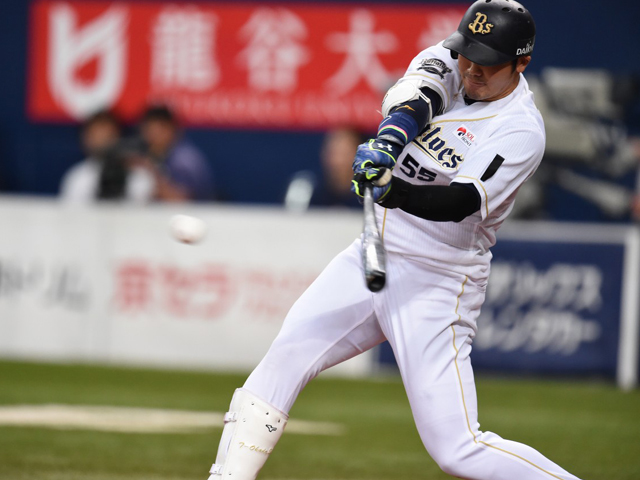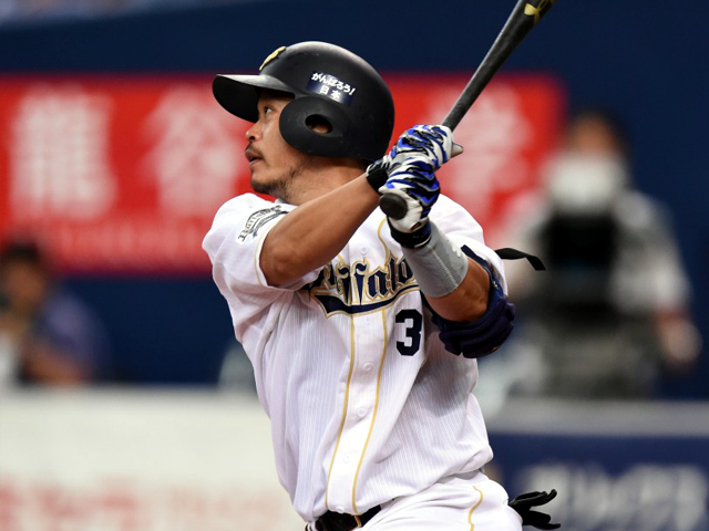 6番 T-岡田 左安 2アウト3塁からレフトへのタイムリーヒットでオリックス勝ち越し! オ2-1日 1塁 ![]() 2