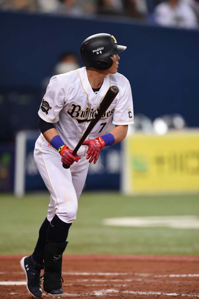 3番 糸井 中安 2アウト1,2塁の2-0からセンターへのタイムリーヒット オ2-5西 1,3塁 ![]() 2